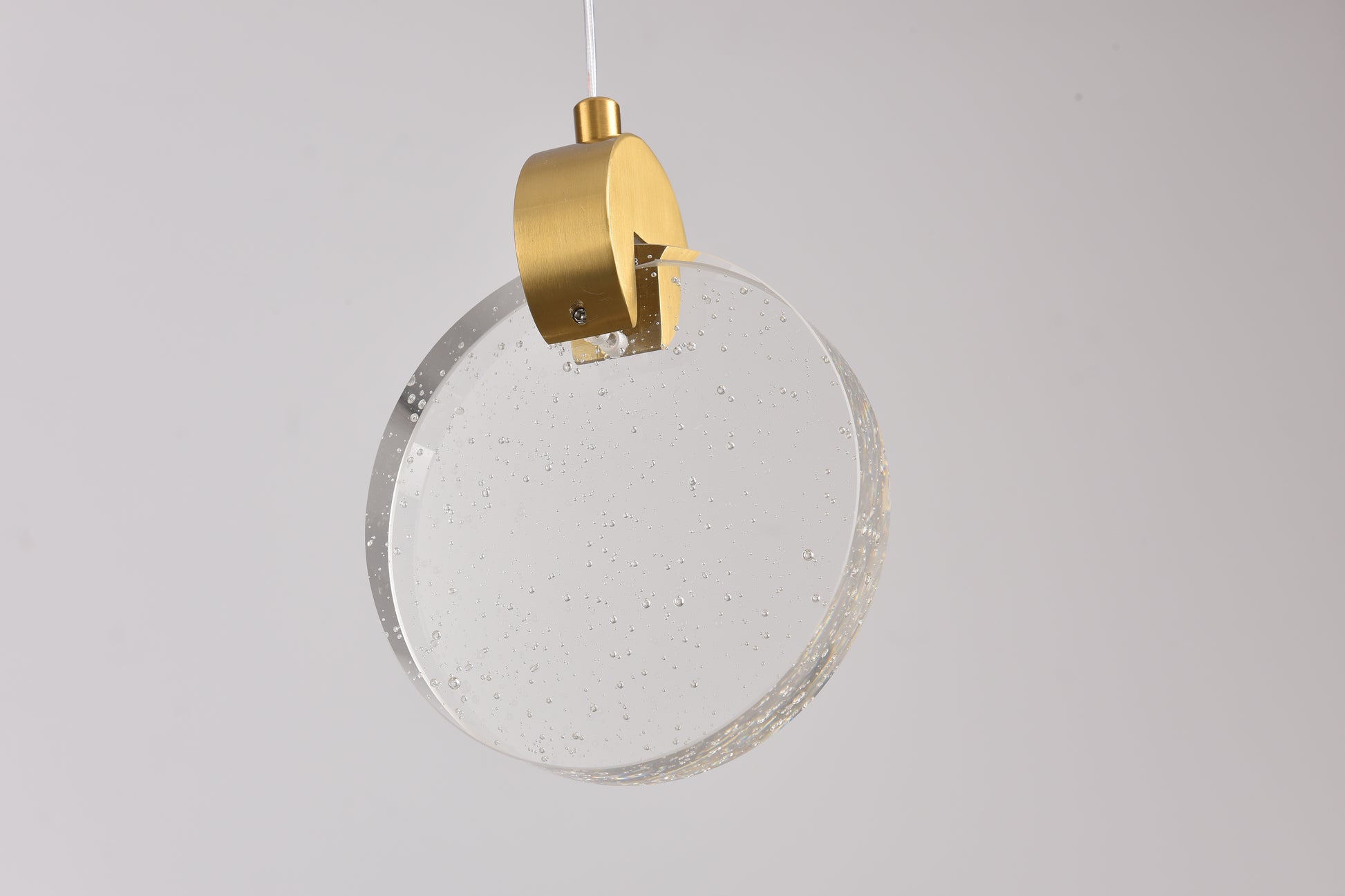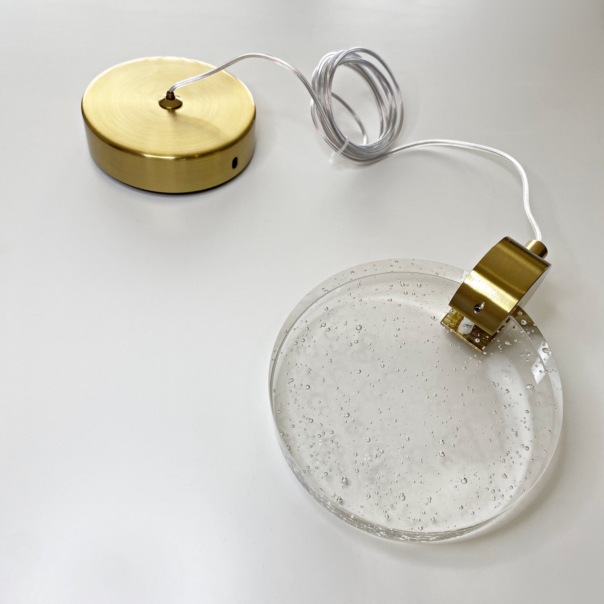 Wisząca lampa Aurora w kolorze szczotkowanego złota to propozycja dla osób, które cenią sobie luksusowy charakter i nietuzinkowe rozwiązania. Szklany okrąg z efektem bąbelków tworzy wyjątkową grę świateł i cieni, która dodaje pomieszczeniom wyjątkowej atmosfery. Solidne wykonanie, waga ok. 5 kg oraz najwyższej jakości materiały czynią z niej produkt premium. Dzięki zasilaniu LED lampa jest energooszczędna i trwała, a regulowany kabel o długości do 2 m pozwala dopasować wysokość zawieszenia do indywidualnych potrzeb.
